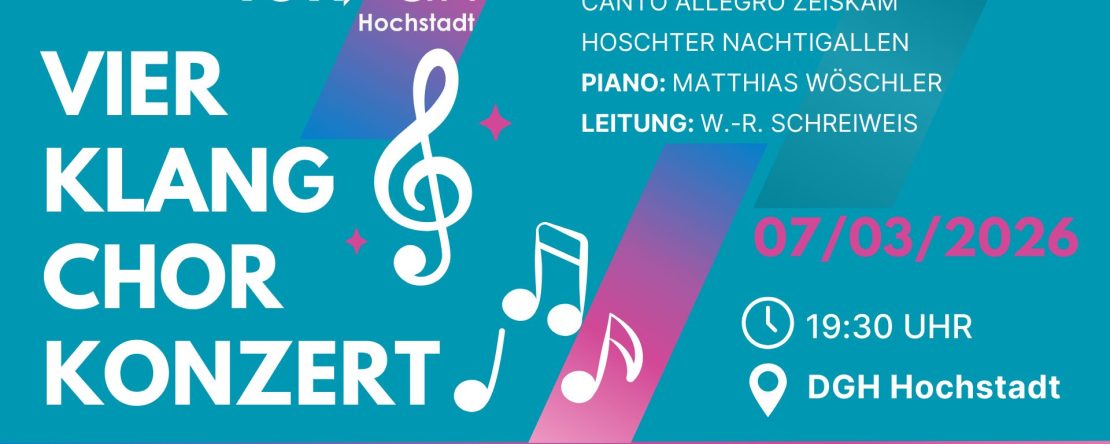 am Samstag 07. März 2026; 19:30 Uhr im Dorfgemeinschaftshaus Hochstadt sind wir wieder auf der Bühne. Wir freuen uns darauf Euch unser neues Programm vortragen zu dürfen . Wir haben wieder neue Lieder für Euch vorbereitet, natürlich werden auch einige unsere Klassiker nicht fehlen. Am Klavier begleitet uns -wie immer- […]