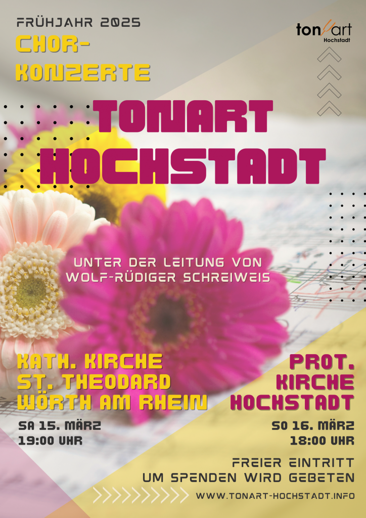 Sonntag 16. März 2025 um 18:00 Uhr in der protestantischen Kirche Hochstadt im Unterdorf ( Hauptstr. 203, 76879 Hochstadt / Pfalz)